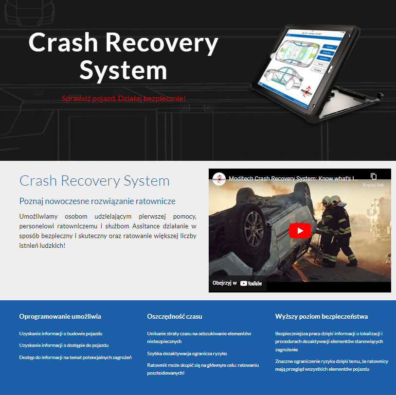 pozwala służbom ratowniczym na szybkie i bezpieczne odzyskiwanie rozbitych pojazdów. W ciągu kilku sekund system wyświetli arkusz danych z niezbędnymi informacjami o lokalizacji i procedurach obsługi odpowiednich komponentów. Znaczna oszczędność czasu, ponieważ wszystkie istotne dane są dostępne na miejscu.